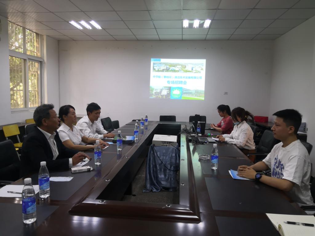 为了给毕业生提供更多的就业机会、更好的就业平台,2021年3月30日,学院邀请中节能(攀枝花)清洁技术发展有限公司在生化楼会议室开展了2021届毕业生宣讲与专场招聘,与会的有bat365官网登录入口院长朱学军、副书记曾成华、学生科科长陈华以及应聘学生。