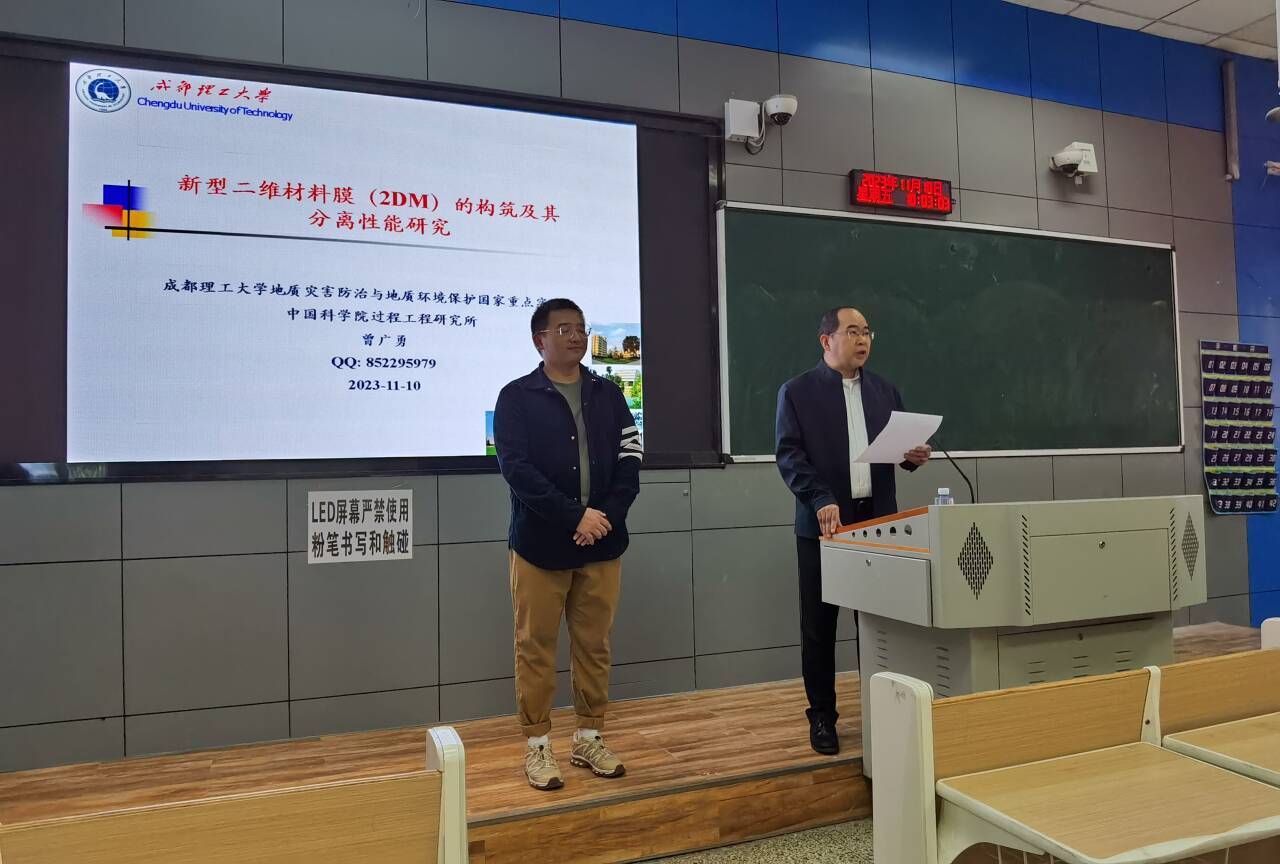 我校2009级化学工程与工艺专业优秀校友,成都理工大学曾广勇研究员应邀来校参加“攀登四十载奋进新征程”助力共同富裕试验区暨应用型一流大学建设推进会之际,于11月10日上午在第一教学楼1-1特邀做题为《新型二维材料膜(2DM)的构筑及其分离性能研究》的专题学术讲座,受到我校师生的热烈欢迎。bat365官网登录入口党委书记刘东康主持,党委组织部部长苏兴仁参加并讲话。